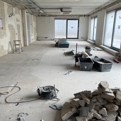 Nachdem das Personal in den Ruhestand gegangen war, wurde die Kantine in eine Ruhephase gelegt und kehrte nach ganzen drei Jahren in vollem Glanz zurück. Die Umbaumaßnahmen umfassten eine Kernsanierung, eine neue Elektrik und einen Heizungsboden und erstreckten sich auf die gesamte Etage mit neuem Flur und Terrasse. Nach dem Austausch mit der Geschäftsleitung wurde klar: Es sollte kein Standard-Mitarbeiterraum entstehen, sondern ein Ort, an dem sich alle ausruhen, austauschen und der wieder zu einem Treffpunkt wird. Die Langlebigkeit und Funktionalität der Möbel wurde nicht auf Kosten der Ästhetik ausgetragen. Durch die drei Zonen Bildung, Insel und Essbereich sowie den Lungenbereich wurden alle Bedürfnisse der Interaktion und des Rückzugs berücksichtigt.